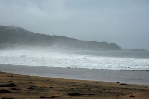 14:00の房総の海です。 いまのところ想像していたほど波はあがってません。 雨は夜明け前から降り続いています。 雨量はまだ僅かです。
