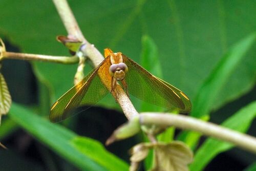 羽化したばかりの雄はこんな色なのですが...。 成熟すると真っ赤になるはず。 雌でしたらさほどの変化は無いかもです。 ショウジョウトンボに間違いなければの話ですが。
