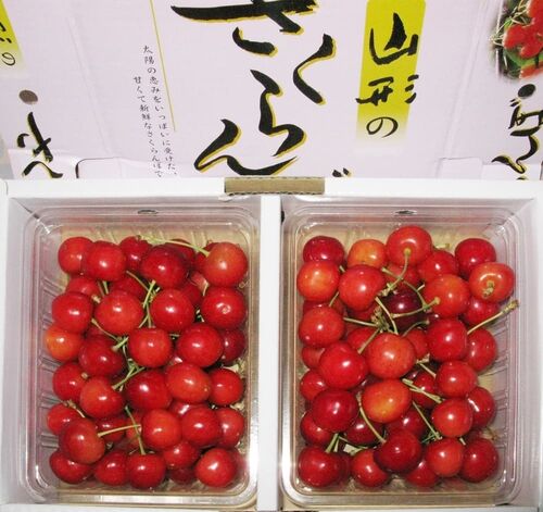 山形のブランドさくらんぼ「佐藤錦」です。さきほど友人のY君から今年も届きました。お気遣いありがとうございます。来年も楽しみにしております。箱を開けると大粒のさくらんぼがどーんと2パック。昨日行ったスーパーの物とは見栄えから違います。 現在冷…
