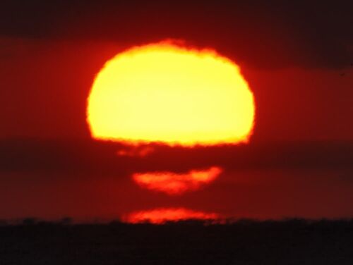 今朝もよく冷え込みました。5:00Amの段階(ISSの撮影の為に夜空をチェック)で 水平線方向の雲量はごく僅か。東の空が赤く色づき始めると海鳥が飛び交いながら騒ぎ始める。・・・・・・・・・グリーンフラッシュは見えませんでしたが久々の オメガサンでし…