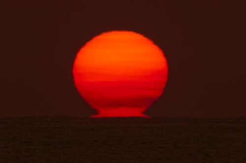 天気予報は怪しかったですが(午後から雨だそうです。)今季最初の水平線から昇る太陽が撮れました。薄雲がかかっているために太陽の質感が若干異なります。