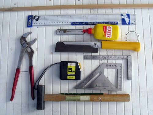 こんな道具を使ってます。このほかに電動ドリルを少々使用いたしました。 内枠も付けてちょっとだけ豪華に 購入した方が安くて見栄えは良いかと思いますがとりあえず作ってみたかったのです。 たぶん 、もう一個作るとそこそこの物が出来るかと思います。