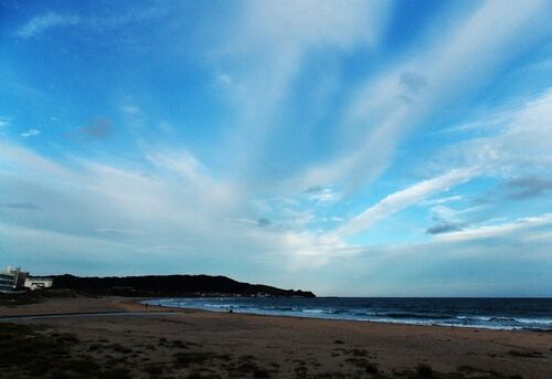 午後五時過ぎの海です。 台風14号の影響でしょうか? 波は朝の内と比べると若干高くなってきました。 風も少々強くなってまいりました。カイトサーフィンが現れました。