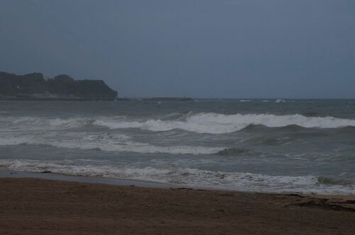 午後になって雨は止みました。 海は少々荒れてます。 明日は晴れ予報です。