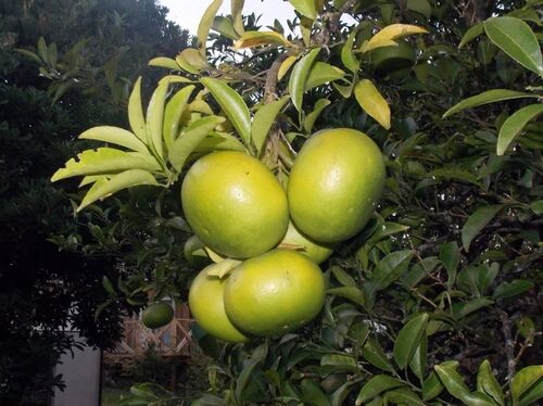 散歩から帰って来る頃にはすっかり暗くなってしまいますので・・・ コンデジを持って出かけることにいたしました。 ナツミカンです。今の時期は青々としてます。 冬を越した翌年の夏頃が食べごろです。 今日も穏やかな天気でした。