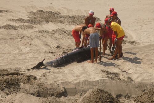 午前九時過ぎに海岸へ出向いたら・・・ イルカが漂着したのでその処理をしている最中だと・・・。 砂浜の端に埋葬。邪魔にならないように近くに寄ることを控えましたので遠めに視た感じと写真のみで考察。たぶんコマッコウ(小抹香、Kogia breviceps)。クジ…