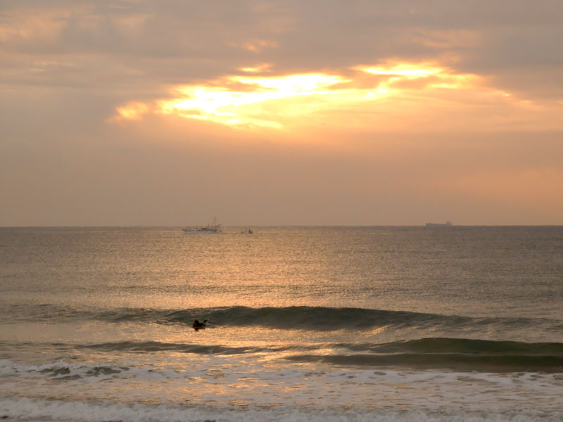 今朝も寒いです。 海は穏やかです。サーファーが一人だけエントリしております。